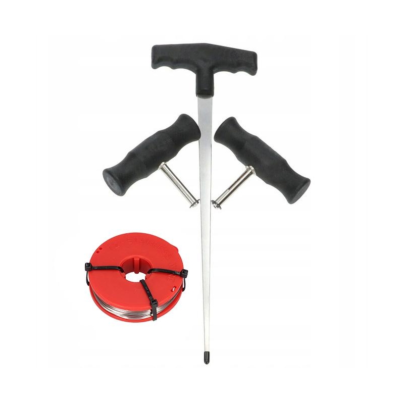 Ergonomiczne uchwyty wykonane z trwałych materiałów zapewniają pewny chwyt i komfort pracy, zapobiegając wyślizgiwaniu się z dłoni. Nawlekacz z profilowaną końcówką ułatwia przebicie warstwy kleju i szybkie przeprowadzenie drutu, co znacząco przyspiesza cały proces demontażu.