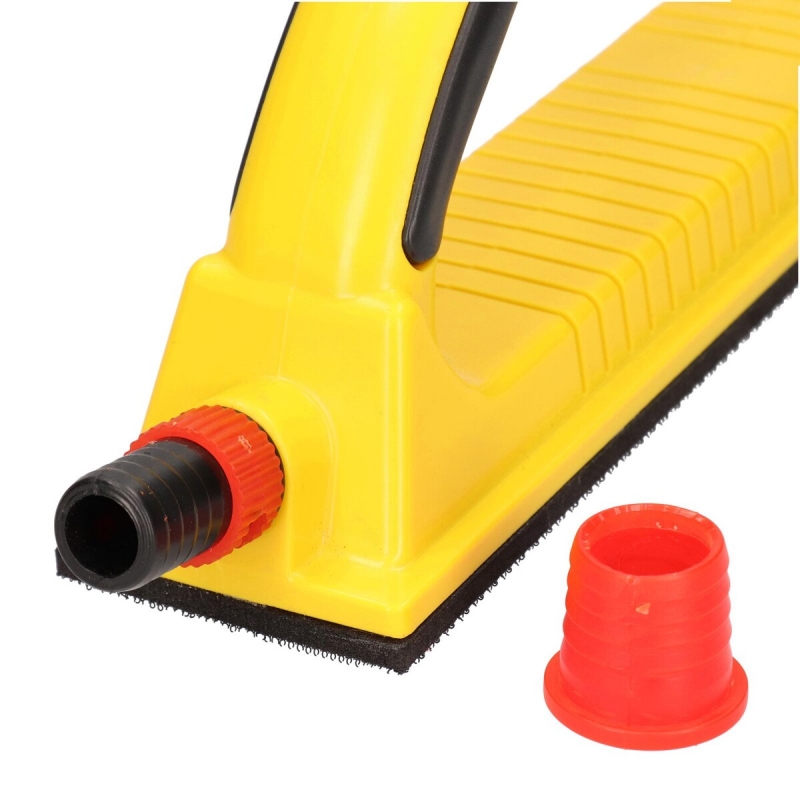 Model wyposażony w 53 otwory odpylające oraz system odciągu pyłu pozwala pracować bezpyłowo, co znacząco zwiększa komfort i czystość w miejscu pracy. Ergonomiczna rączka zapewnia pewny chwyt i stabilność, a mocowanie papieru ściernego na rzep umożliwia szybką wymianę materiału ściernego bez użycia narzędzi.