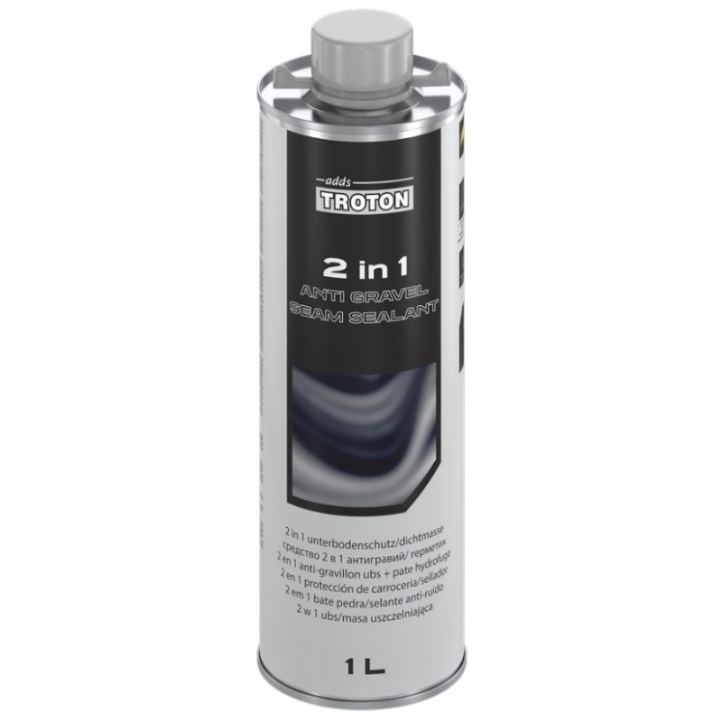 AddsTroton 2in1 Anti Gravel Seam Sealant to profesjonalny preparat oparty na bazie kauczuku i żywic syntetycznych, przeznaczony do podwójnego zastosowania – zabezpieczania karoserii samochodowej przed uszkodzeniami mechanicznymi, korozją i szkodliwym wpływem warunków atmosferycznych, a także do uszczelniania złącz oraz spawów przy użyciu pistoletu natryskowego.